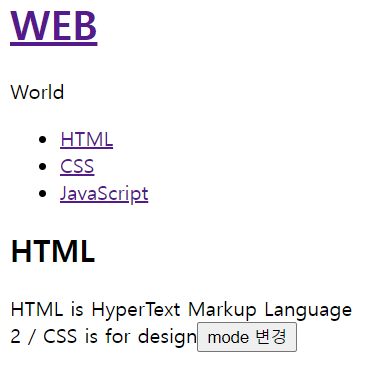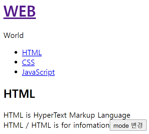 HTML 클릭 시 | CSS 클릭 시 | JavaScript 클릭 시 | WEB 클릭 시 |