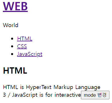 | HTML 클릭 시 | CSS 클릭 시 | JavaScript 클릭 시 | WEB 클릭 시 |