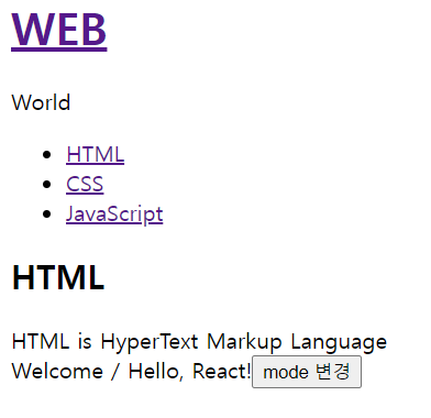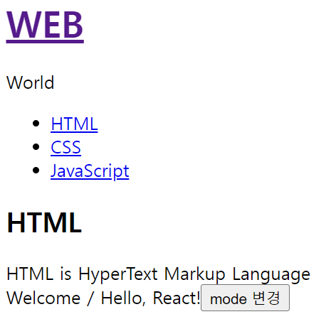 this.setState({mode:"welcome"}); //state는 바로 바꿀 수 없고, setter를 이용해야 함