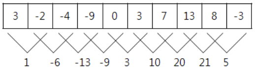 좀 더 빠른 계산을 위해 합계의 첫값을 빼고, 끝 다음값을 더하는 과정을 반복하여 구간합을 계산합니다.