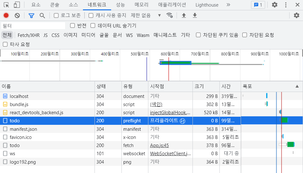 이를 http://localhost:8081/todo 에 response.json을 전달하고 요청한다.