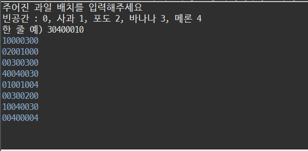 //빈공간 : 0, 사과 1, 포도 2, 바나나 3, 메론 4