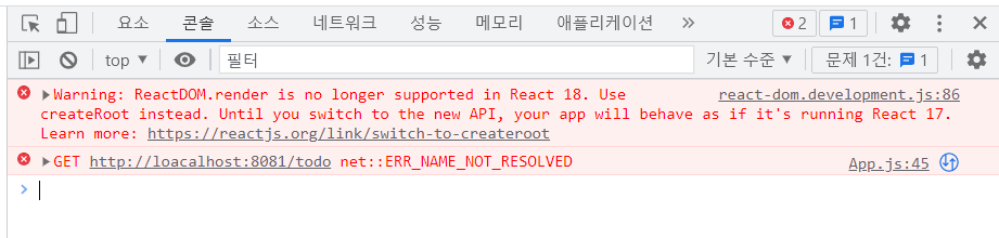 리액트 실행 중 항상 콘솔창에 다음과 같은 에러가 표시되어 있다.